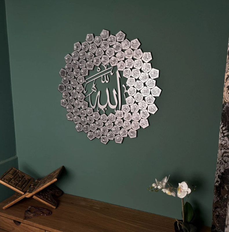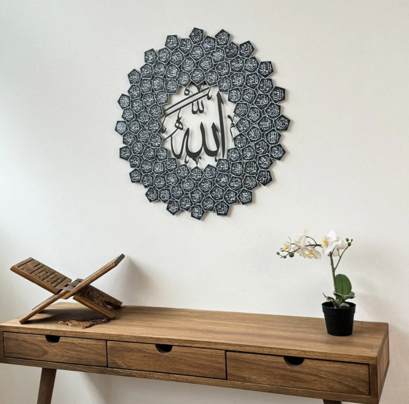 Bring a sense of serenity and devotion to your home with our Al Asma Ul Husna – 99 Names of Allah Wall Art, thoughtfully crafted to highlight each divine name with clarity and elegance. The UV-printed Arabic calligraphy enhances the artwork with crisp detail, making it a standout piece for any Islamic interior setting.