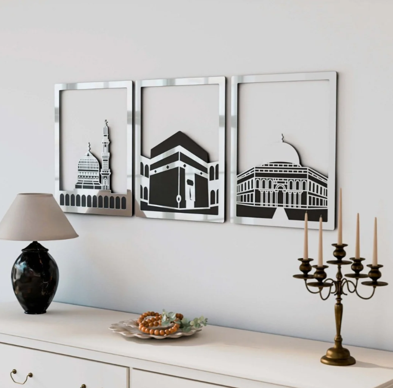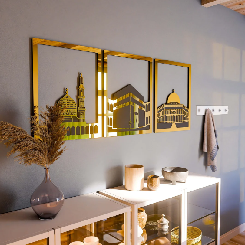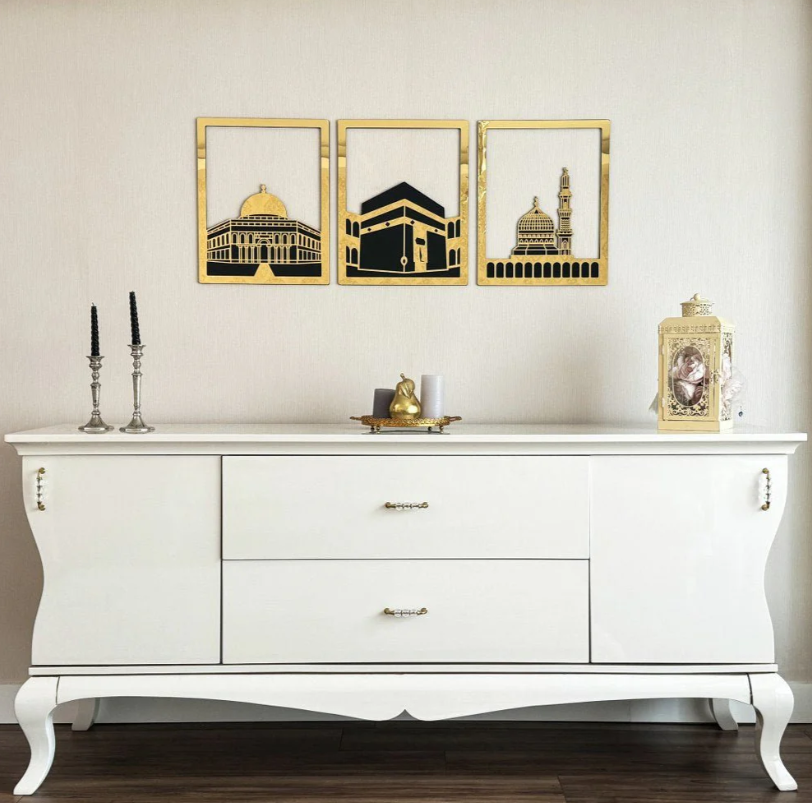 Celebrate the rich heritage and sacred beauty of Islam with our Masjid Al-Aqsa, Masjid Al-Haram, and Masjid An-Nabawi Wooden Islamic Wall Art. Each piece reflects the spiritual significance of these revered mosques, bringing a sense of history, devotion, and tranquility into your home.
